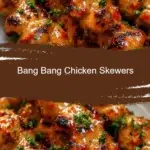 Delicious and easy Bang Bang Chicken Skewers, perfect for grilling season or a quick weeknight meal, served with a creamy, spicy sauce.