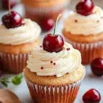 Serve these at room temperature so the frosting stays soft and smooth. Arrange them on a pretty plate or a tiered stand for a party. Add extra fresh cherries or a light dust of powdered sugar. For a simple dessert board, place them next to small fruit tarts or cookies like the ones that go well with blackberry lime cheesecake cupcakes pairings.