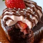 Delicious cupcakes topped with strawberry buttercream and dipped in rich chocolate, perfect for parties or as a special treat.