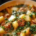 A warm and comforting Italian soup featuring Italian sausage, creamy potatoes, and leafy greens, perfect for chilly evenings.