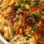 This dish mixes deep onion taste with chicken, orzo, and cheese. It feels warm and rich. It cooks in one pan and then bakes for a golden top.