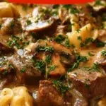 A classic and comforting dish featuring tender beef, creamy sauce, and earthy mushrooms, perfect for family dinners or impressing guests.
