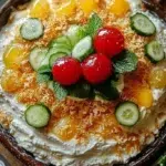 This recipe mixes a soft cheesecake base with fruit and crunchy bits. You will beat the cream cheese until smooth, fold in the whipped topping, and then gently add the fruit, coconut, and graham crackers. For another fruity cheesecake idea, try a simple blackberry cheesecake recipe to compare flavors.