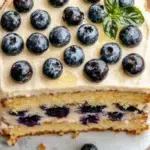 This cake uses simple steps you can follow. You cream butter and sugar, add eggs and lemon, then fold in dry mix and blueberries. Bake the layers, cool them, and fill with a smooth cream cheese frosting. For a related creamy dessert method, check this simple blueberry lemon cheesecake method for more frosting tips.
