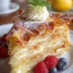 A light and pretty dessert featuring thin crรชpes layered with a soft, lemony mascarpone cream.