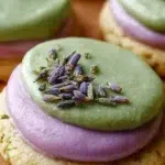 Delightful soft green cookies infused with matcha and topped with a light lavender frosting. Perfect for a calming treat!