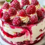 A bright and creamy dessert with luscious layers of whipped cream and vibrant raspberry flavors, perfect for impressing friends and family.