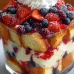 This simple trifle uses cake, berries, pudding, and cream. It looks bright and pretty. It tastes sweet and fresh. You can make it for a small meal or a party. Try a summer berry trifle if you want a very red and blue look.