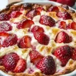 A warm and cozy dessert blending fresh strawberries and rich cream cheese into a soft, low-carb bake.