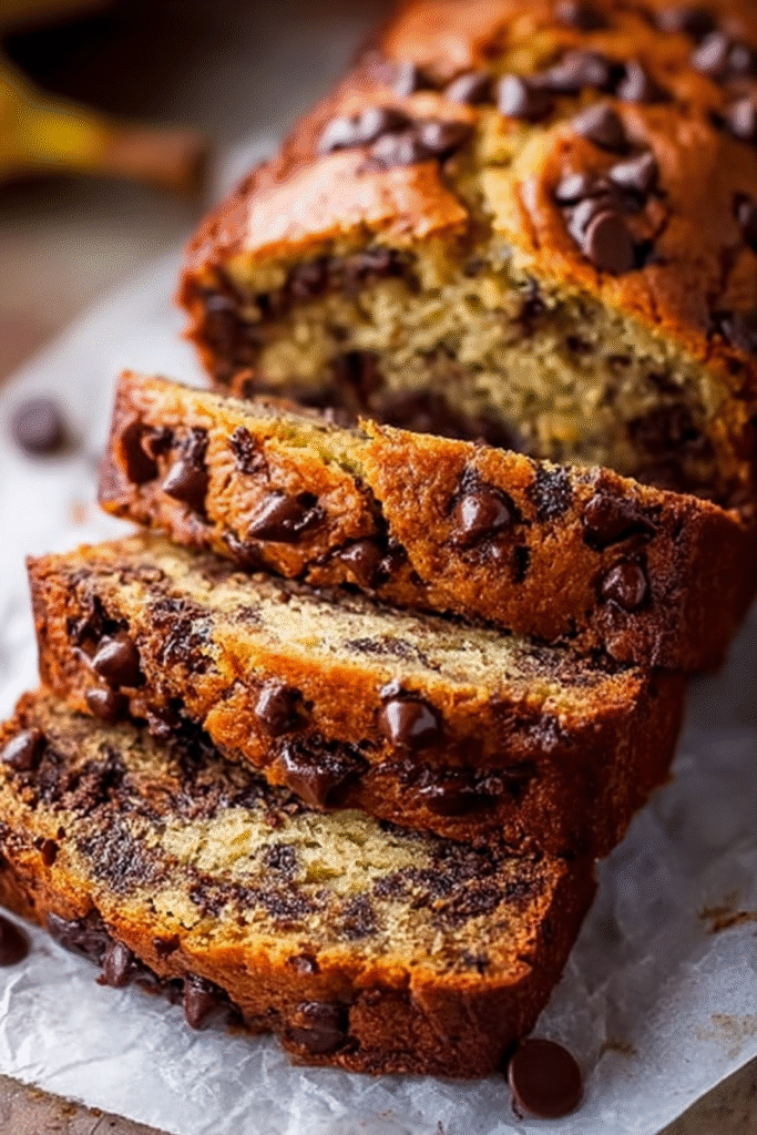 This banana bread is soft, sweet, and packed with chocolate chips, making it perfect for breakfast, snacks, or dessert.