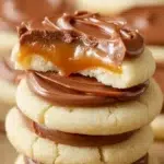 These cookies give you three loves in one: soft cookie, rich caramel, and milk chocolate. You can make a big tray for a party or a small batch for a snack. The parts come together fast and they look nice on a plate. If you want a simple sugar base, you can compare the feel to soft cutout sugar cookies to see how soft the base can be.